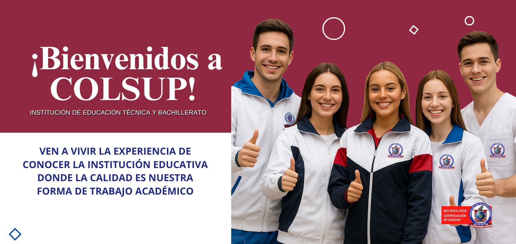 ¡Bienvenido a COLSUP! Somos tu puerta hacia una formación técnica de calidad. Ofrecemos programas especializados en áreas de alta demanda, con titulación ágil, opciones presenciales, y convenios estratégicos con empresas y entidades educativas. Nuestro objetivo es formar Técnicos Laborales para enfrentar los retos del mundo actual y contribuir activamente al desarrollo del sector productivo del país.